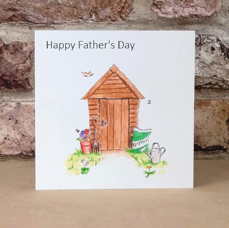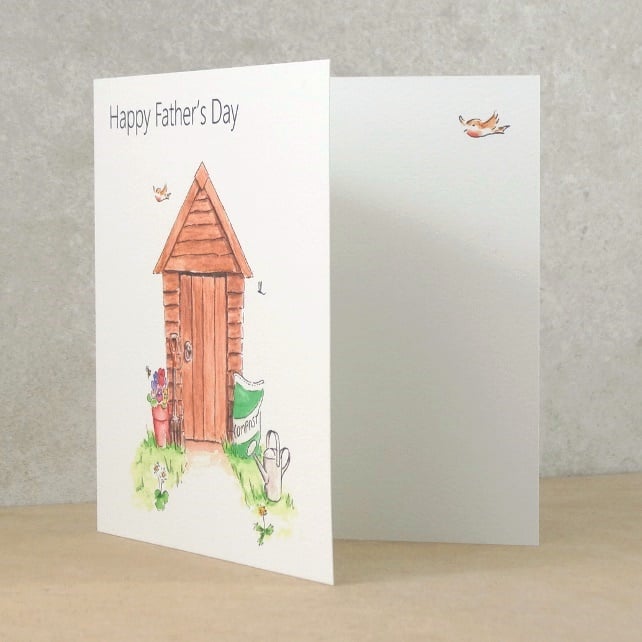 This new ecofriendly Father's Day card Shed has been printed using my original artwork on to 100% recycled felted white 270g card with the words 'Happy Father's Day' only front, the inside has been left blank for your own special message. It has been printed on Felt white card has a lovely textured finish. Size 140 x 140 mm