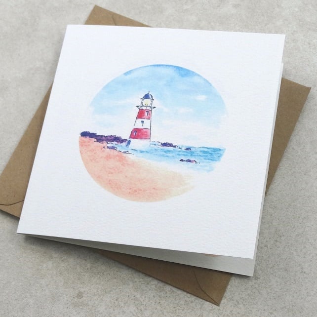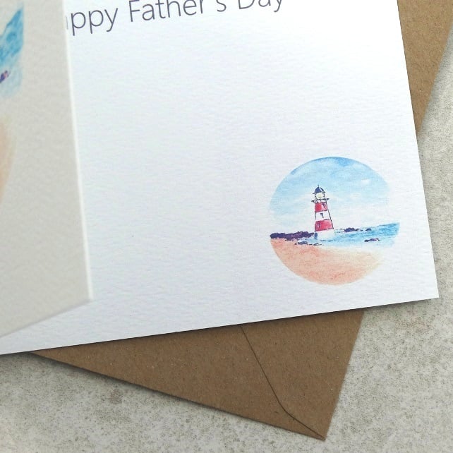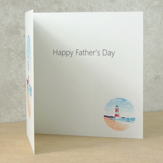 This new ecofriendly Father's Day card Lighthouse has been printed using my original artwork on to 100% recycled felted white 270g card and has the words 'Happy Father's Day' on the inside. It has been printed on Felt white card has a lovely textured finish. Size 140 x 140 mm