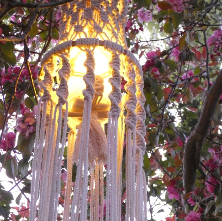 The 'lamp shade' is created around two old embroidery hoops, 10 and 15 cm in diameter.