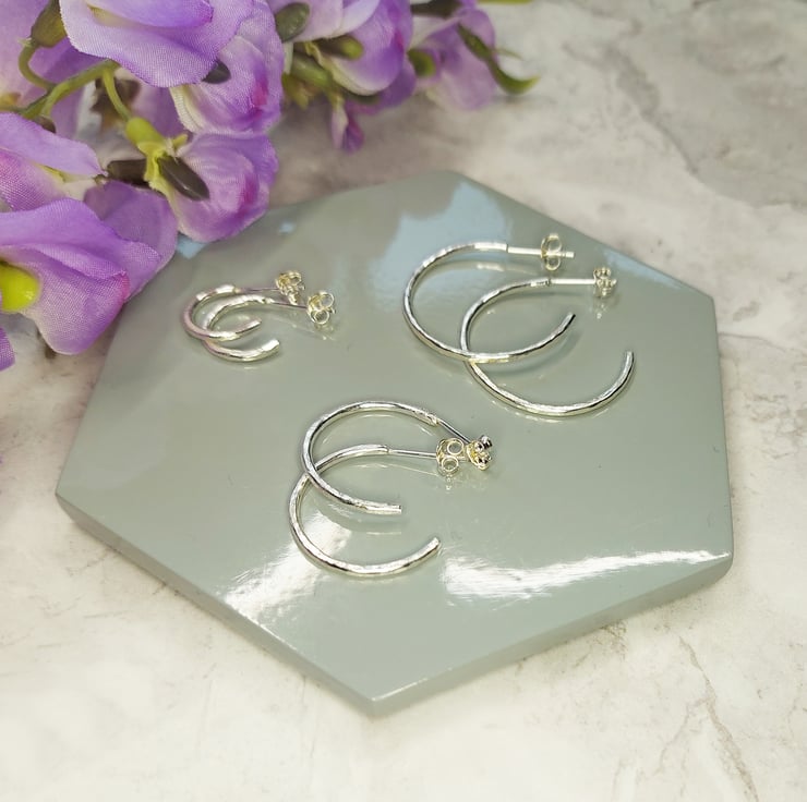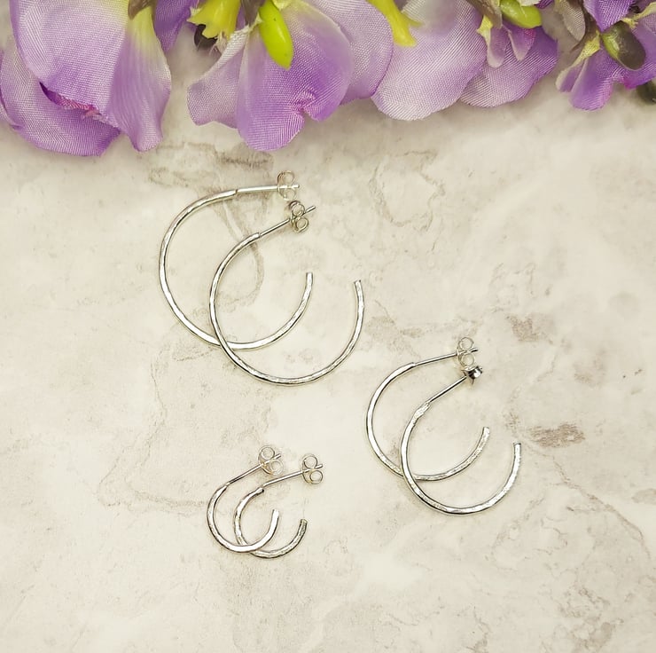 These beautiful handmade silver hoop earrings are perfect for everyday and come in 3 sizes so you can choose the perfect pair.