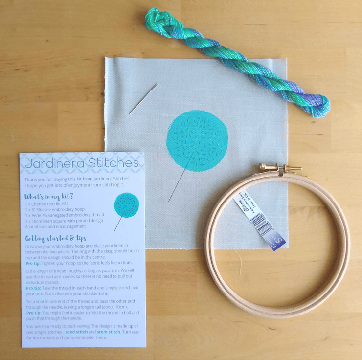 Create your own beautiful handmade wall art with this easy-to-sew embroidery kit. Stitch a line drawing style seed pod design with stunning hand-dyed variegated thread on a contrasting printed background. Suitable for complete beginners - this hoop embroidery kit uses two simple hand embroidery stitches, with full instructions included.