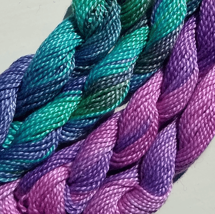 - Perle number 5 embroidery thread in purple - beautiful variegated hand-dyed yarn by Norfolk indie-dyer Sandra Beech, more than enough to complete your kit