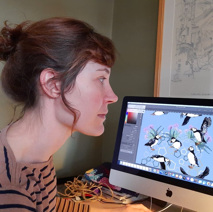 I trained in Applied Arts and printmaking and in 2018 won Kirstie’s Handmade Christmas toy competition. I set up my company, Tammie Norries, I during the first lockdown in March 2020. I work from my home studio in Inverclyde in Scotland. My tea towels, greetings cards and gifts are bold, bright and colourful and are all based on Scottish wildlife featuring animals and flowers. I hope they will bring warmth and colour into your home.