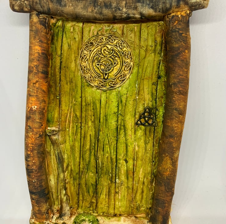 This is a classic Celtic door with Celtic dragon emblem emblazoned on the front.