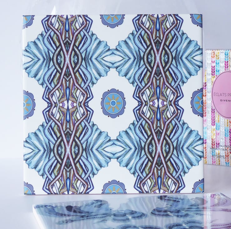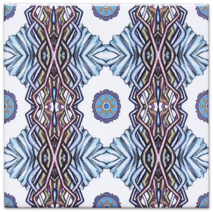Ice Blue Geometric Pattern Ceramic Tile Trivet with Cork Backing
