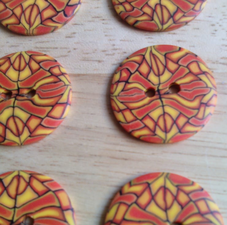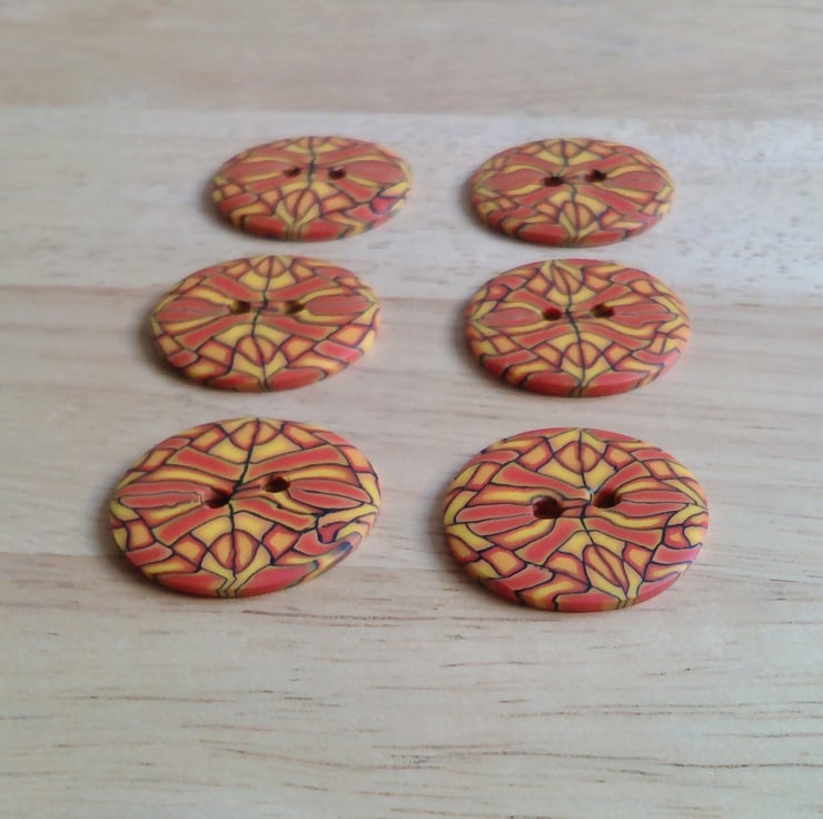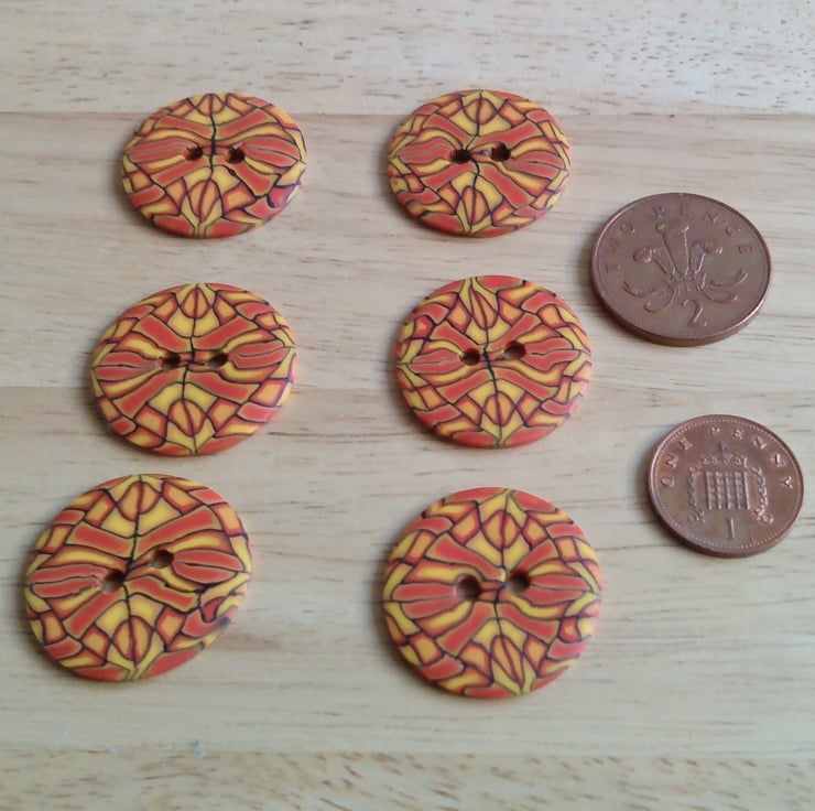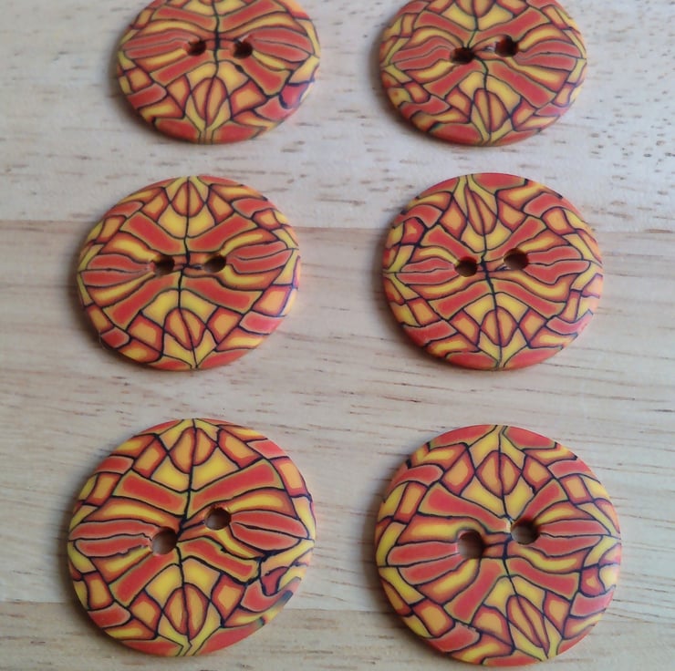 Set of 6 Medium size buttons. Buttons are handmade by me from polymer Fimo clay.