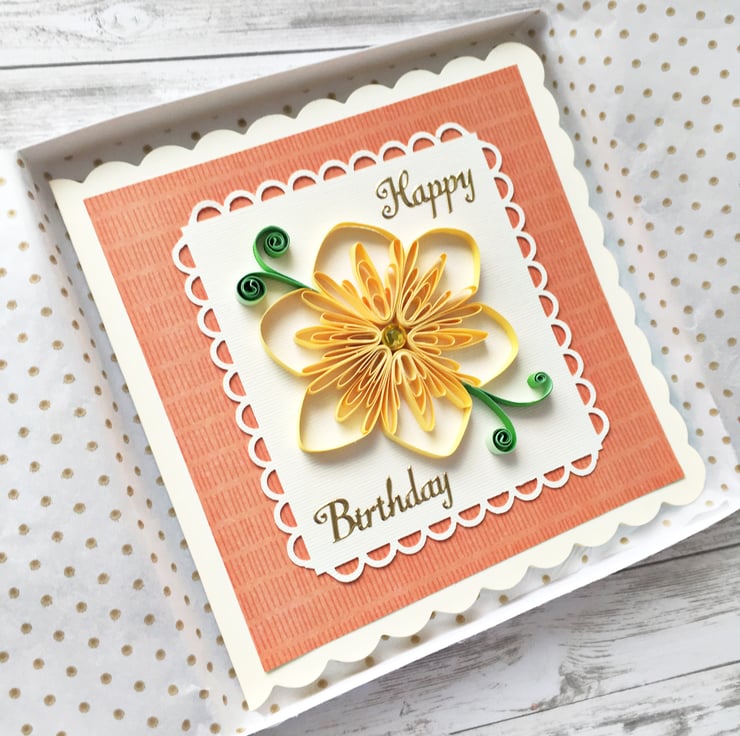 A beautiful hand-quilled birthday card with the option to add a matching gift box for that extra special touch.