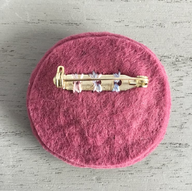 This Hand Embroidered Apple Brooch is a nice wearable size 1.5 inches or 4 centimetres in diameter. It has a brooch pin with a safety catch sewn on the back for secure wear.