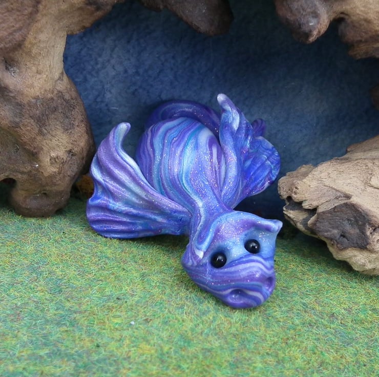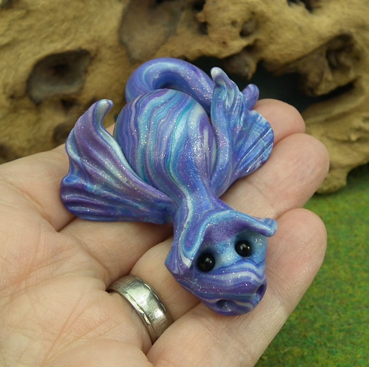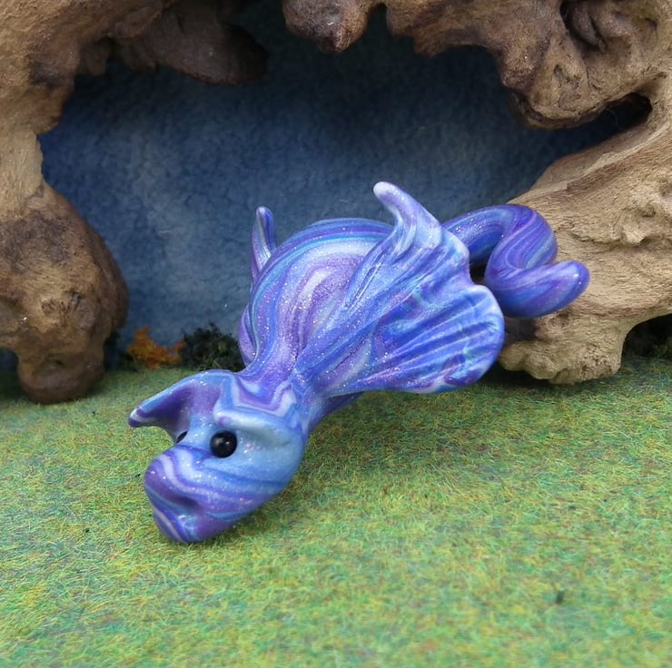 A 'one of a kind' creation having been entirely handmade without the use of moulds here at my studio on the Sussex Coast. Modelled with Prosculpt polymers, painted with heat set paints before sealing with lacquer. Quint is just three inches from snout to tail ...