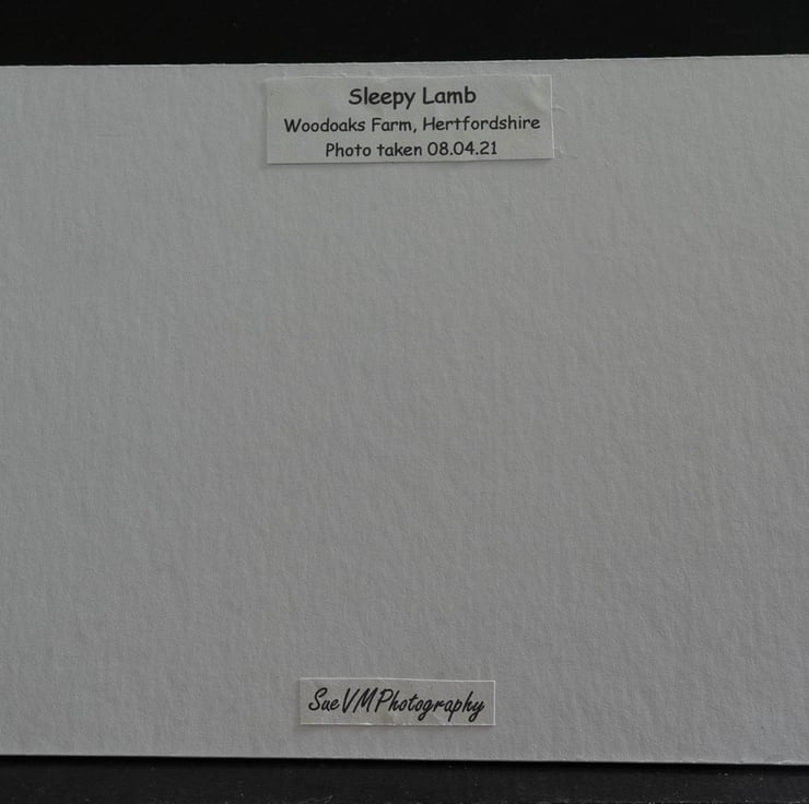This mounted photo is called 'Sleepy Lamb'. I took the photo at Woodoaks Farm in Hertfordshire on 08.04.21 whilst walking in the surrounding countryside. Only 5 original mounted photographs are available, each of which are hand-singed by myself.