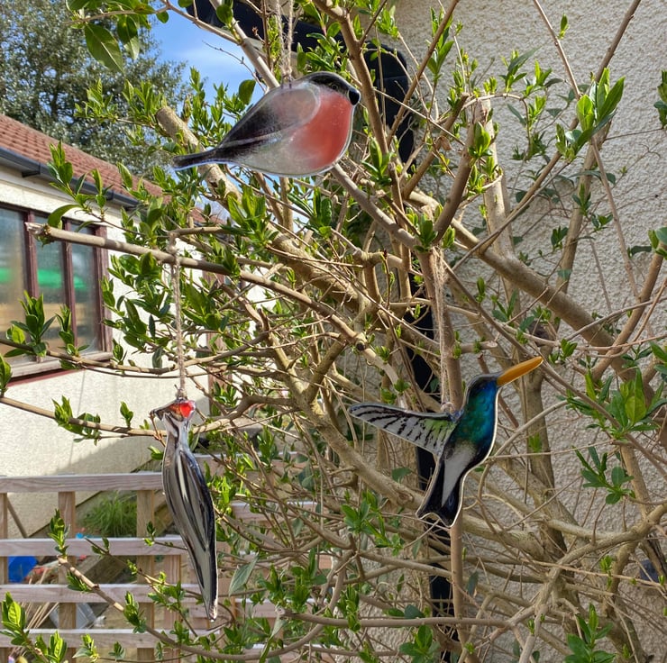 These are fantastic to hang around the house or in the garden to add a bit of colour and art. Would be a perfect gift for bird loving twitcher friends, also ideal for small garden or balcony where the more colourful birds don't visit (and they don't need feeding !!!!!)