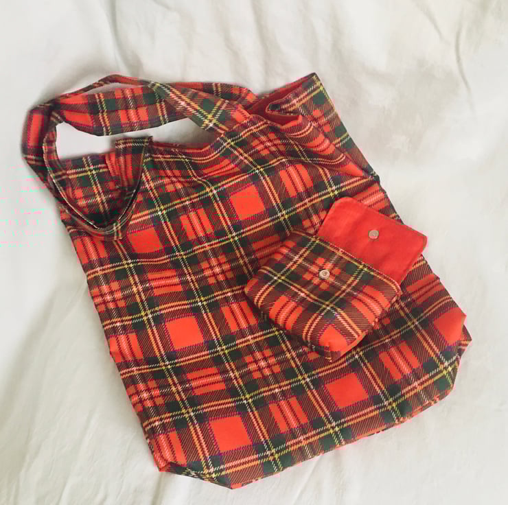 This is a versatile, Eco friendly shopping tote bag, with it's own matching pouch. The bag folds away neatly into the pouch, making it easy to pop into your handbag or to leave in the glove box of the car, so always having a bag handy and ready, for any unexpected trips out and purchases.