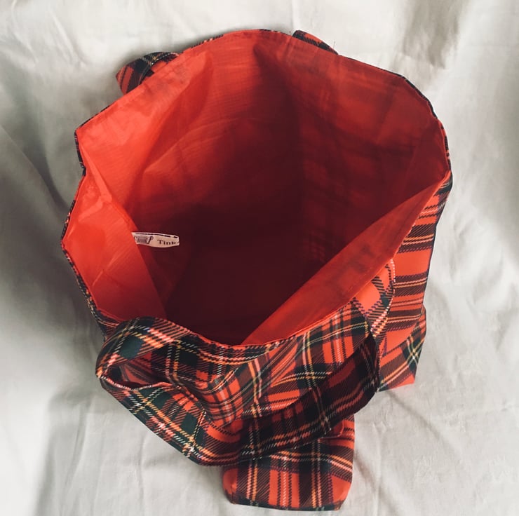 The bag is durable being made from water resistant fabric for the outer in tartan print and fully line with waterproof fabric. If any spills or leaks, this bag can be simply wiped clean.
