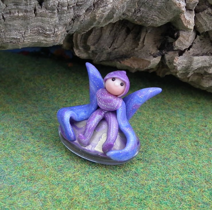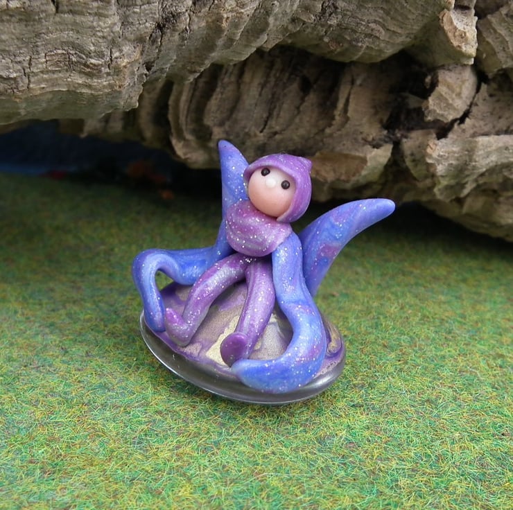 This is a 'one of a kind' creation having been entirely handmade without the use of moulds here at my studio on the Sussex Coast. Modelled with Prosculpt polymers, painted with heat set paints before sealing with lacquer, Daze has sparkling black glass eyes. The handpainted glass base is one inch long.