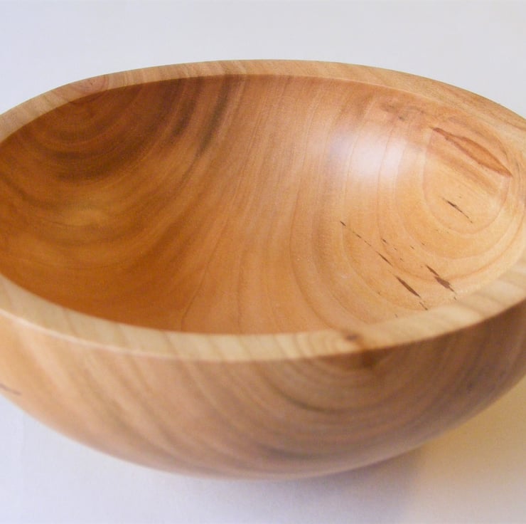 This piece was the second from a log I rescued from a hedge on a country estate where it had been abandoned, cherry is lovely anyway but this piece has some rare spalting which adds to its character. The bowl is a lovely curving shape and has, as it was turned a little green distorted to a pleasant oval shape. A truly unique piece.