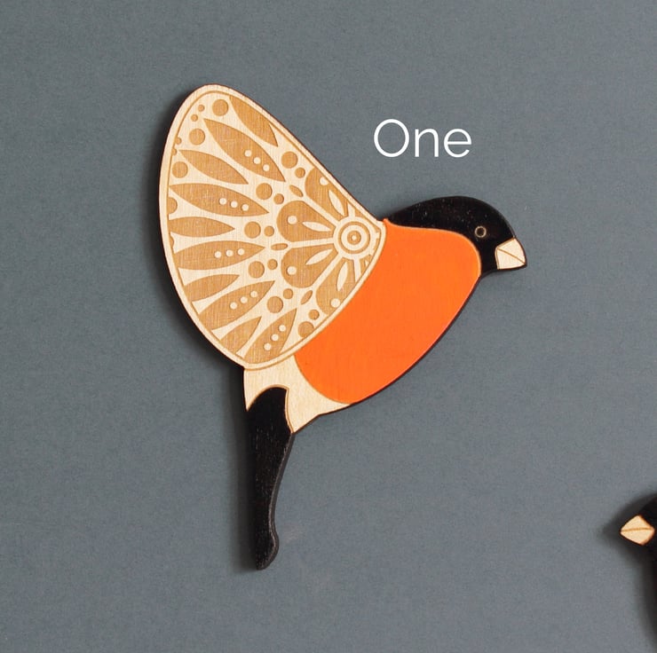 Available individually or as a set of 3, each bullfinch is cut and etched in 6mm birch plywood, giving them a lovely chunky feel, while keeping them nice and light.