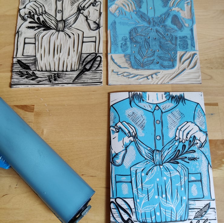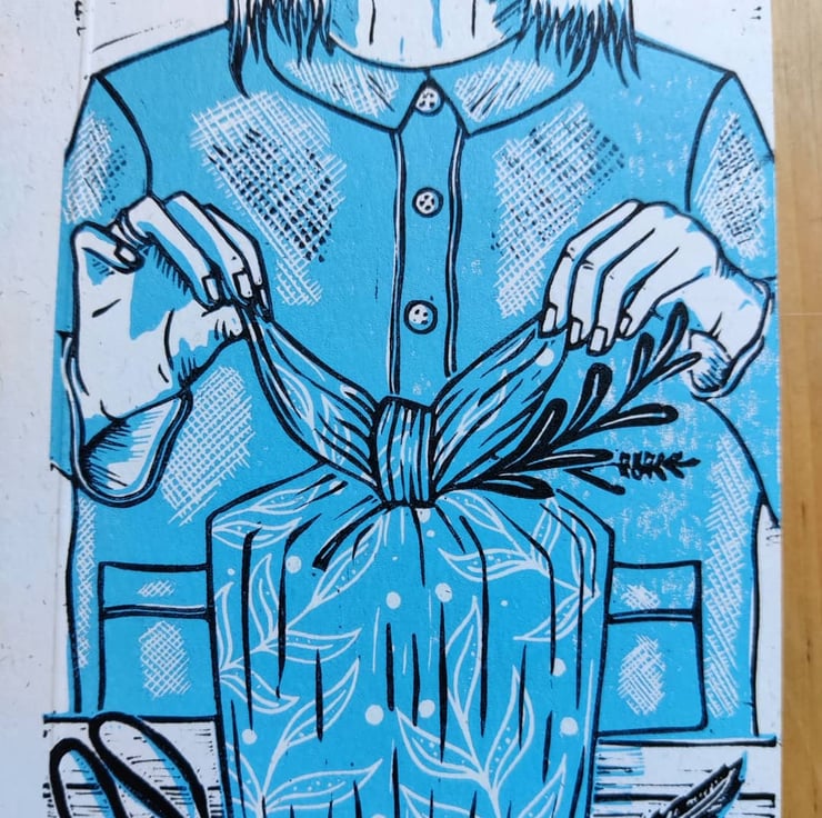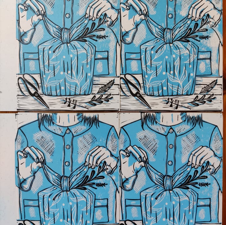 I was inspired by Japanese furoshiki fabric gift wraps. I've also recently loved studying small moments, especially using hands and tools as subjects.