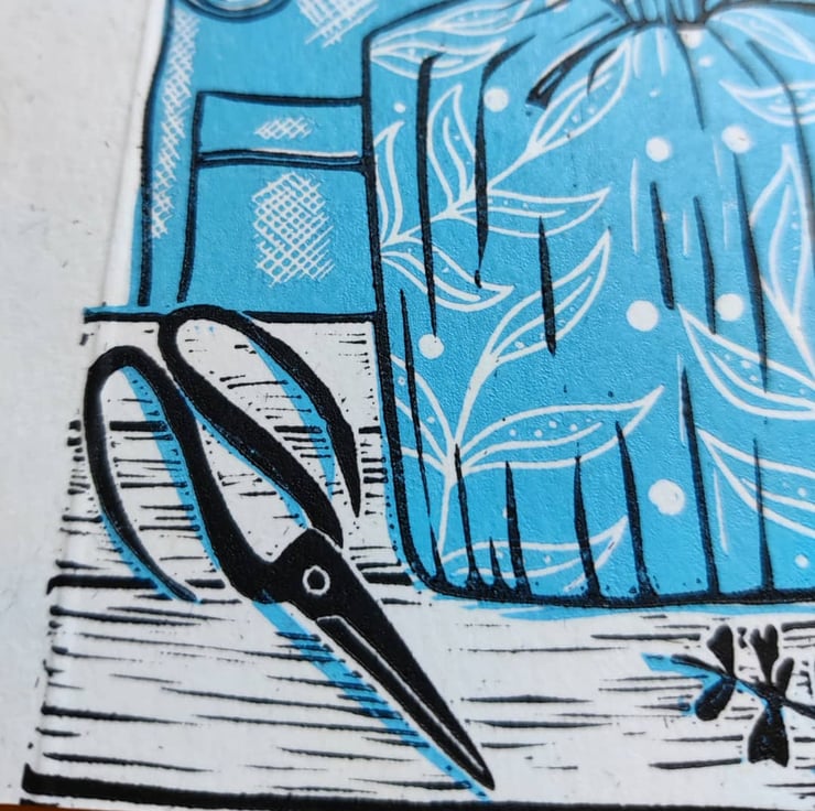 This listing is for a blank a5 card and envelope, printed by hand using 2 lino blocks.