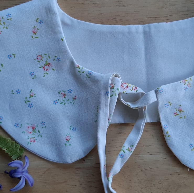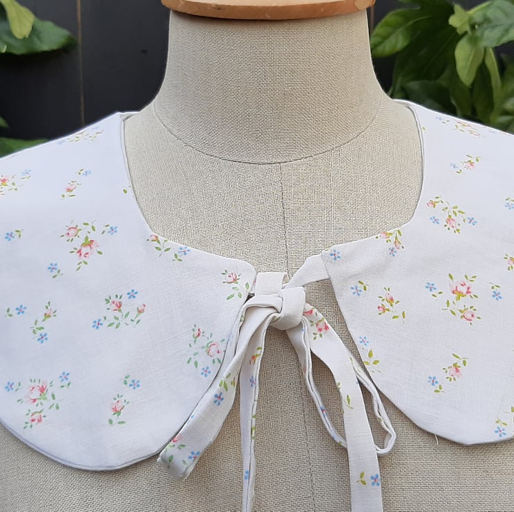 In cotton with a delicate print. Really sweet pretty collar . Beautiful made with care . Bring a whimsical charm to you outfit. By hesta aka bodkincreates on Instagram