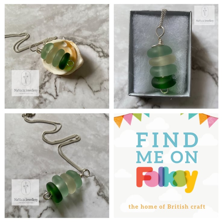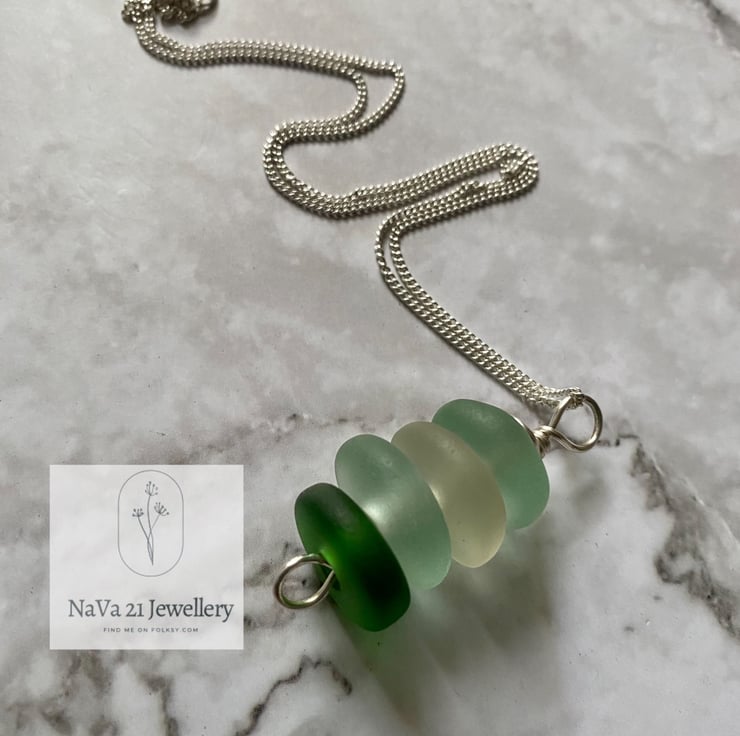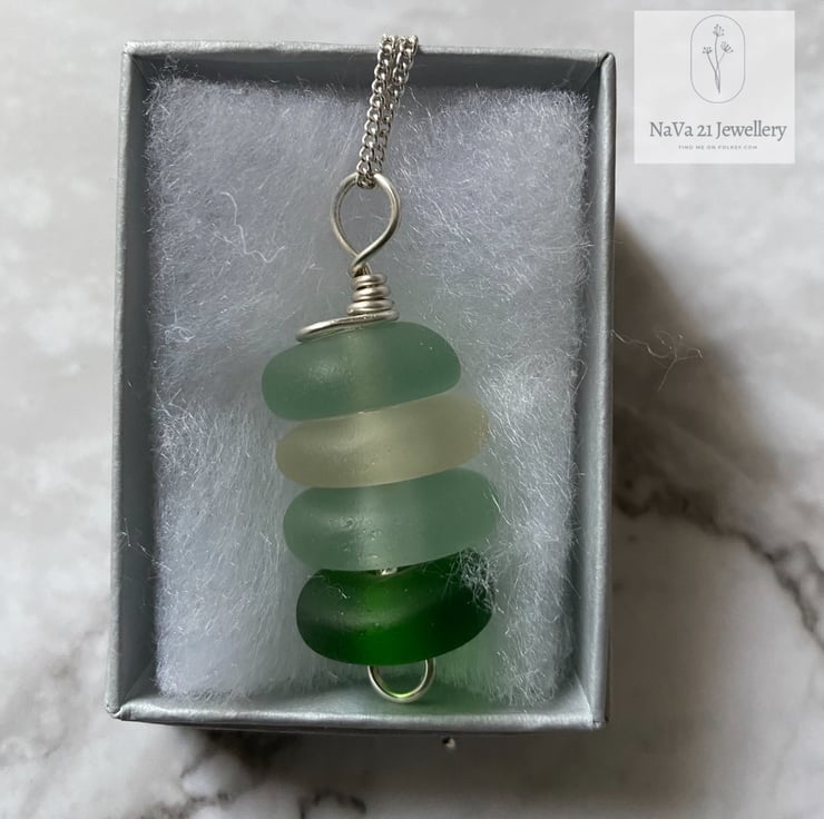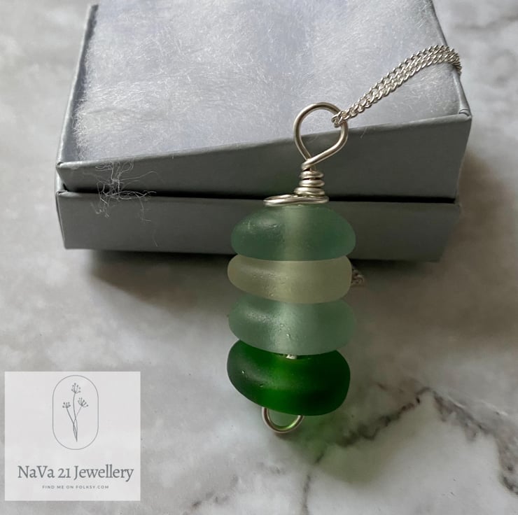 Stacked Seaglass pendant .