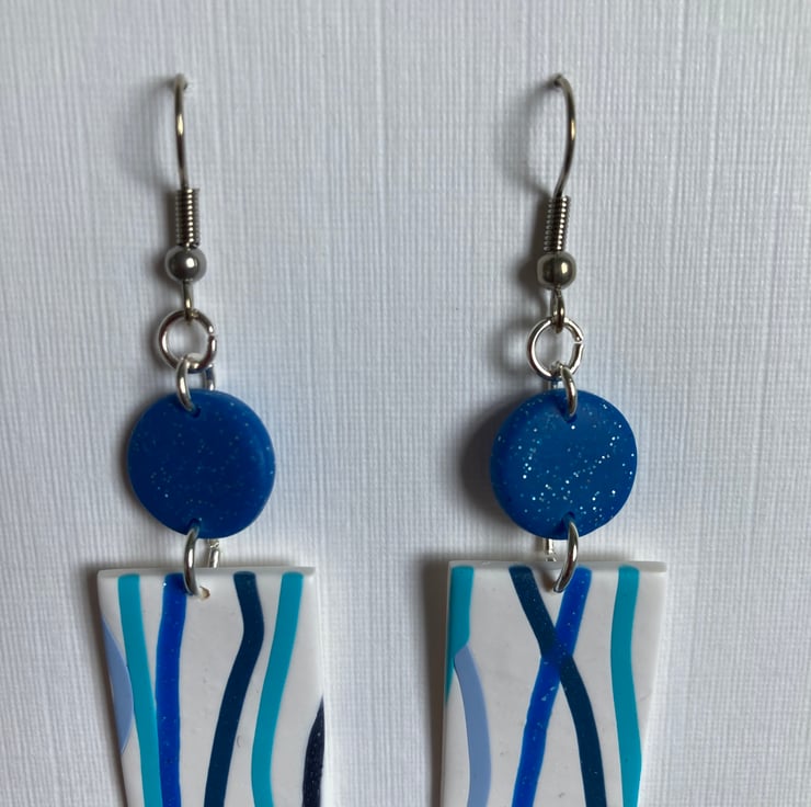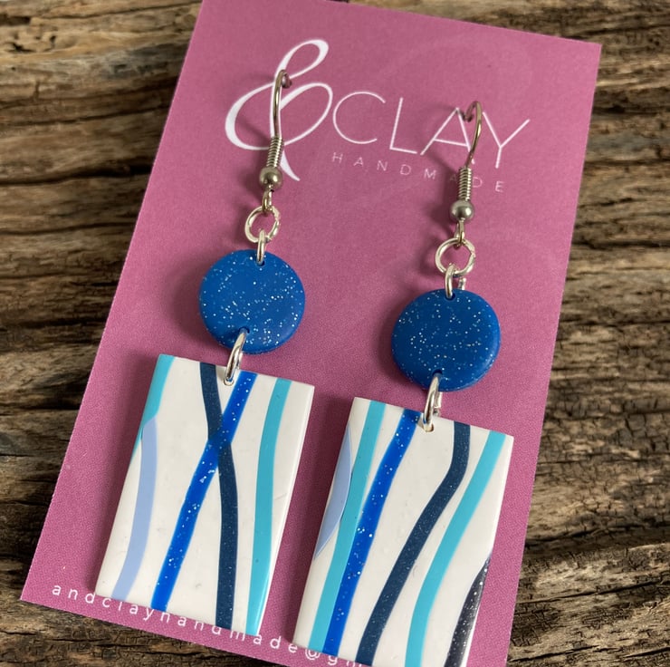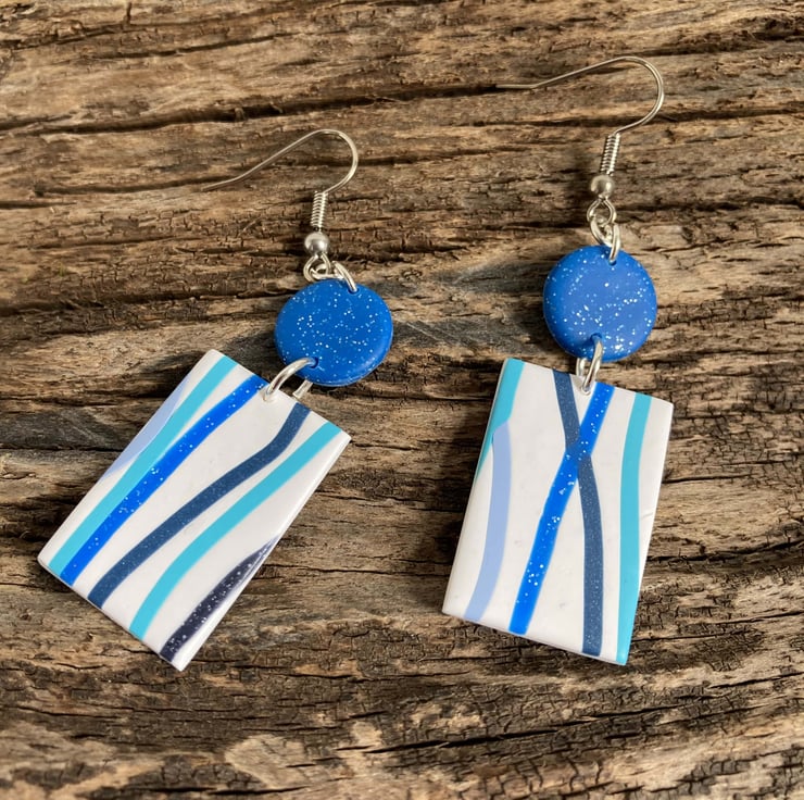Fabulous summer stripe earrings, in shades of blue with white background for contrast and just a hint of glitter.