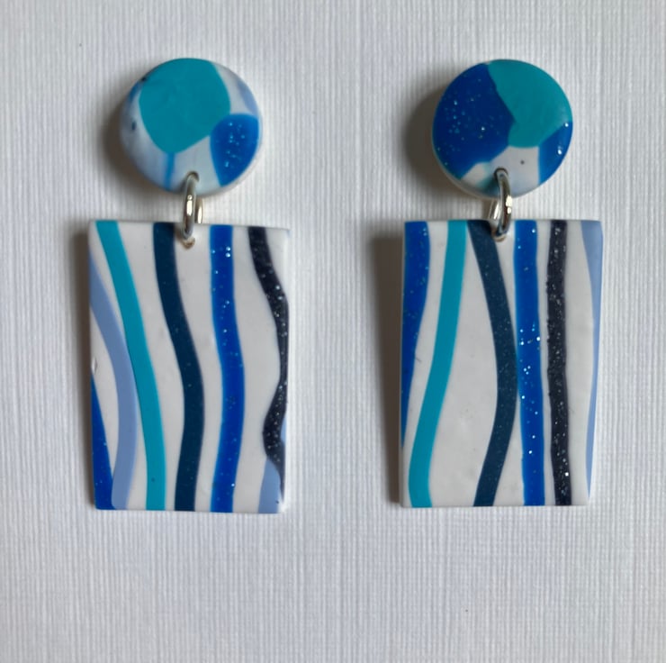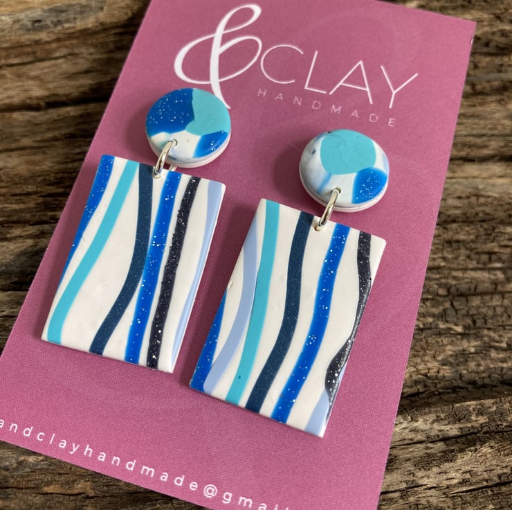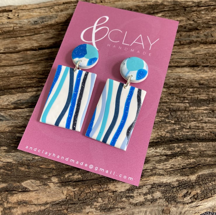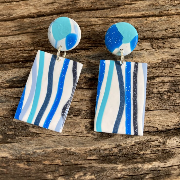 Fabulous summer stripe earrings, in shades of blue with white background for contrast and just a hint of glitter.