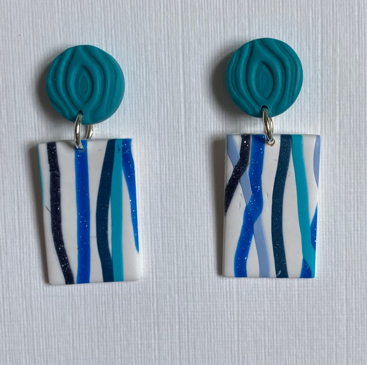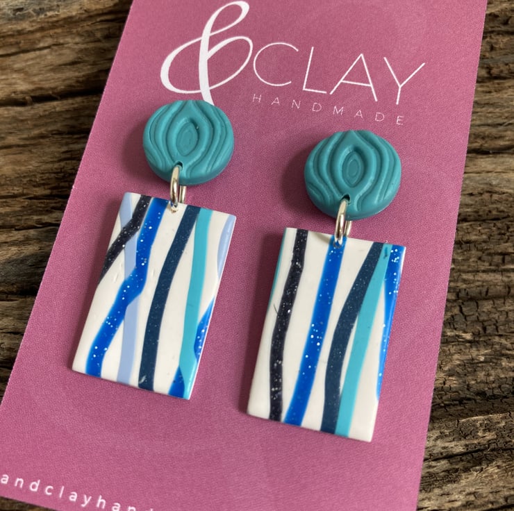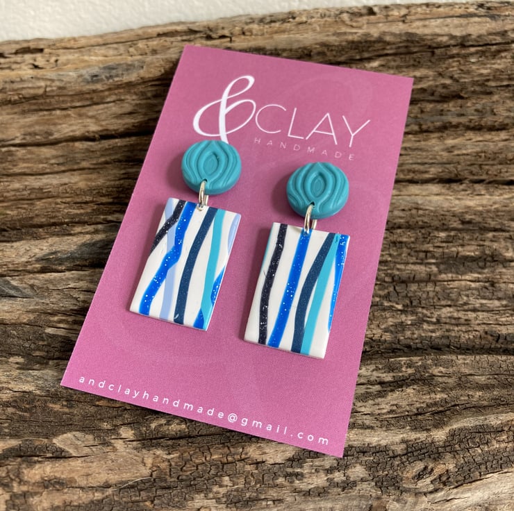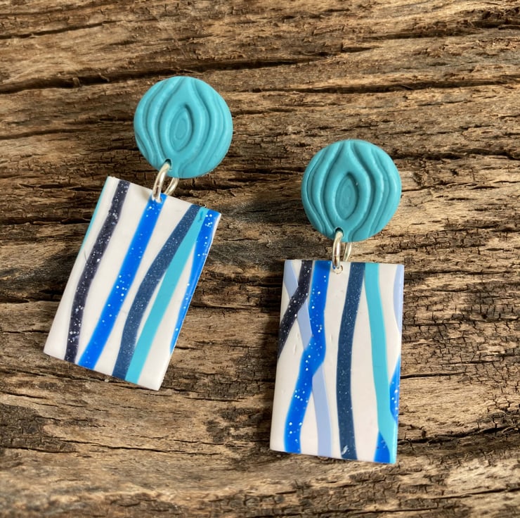 Fabulous summer stripe earrings, in shades of blue with white background for contrast and just a hint of glitter.