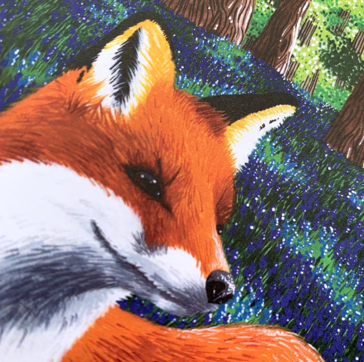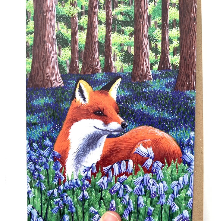 This fox in bluebell woods card is a lovely way to send any message to a loved one. Featuring a red fox laying amongst the bluebells in the woods. The card in blank inside making it easier to write any message that you wish. It has been printed on to uncoated card which gives a soft feel and and easy to write on surface. The card measures 7 X 5, comes with its own kraft envelope. All protected in a compostable clear sleeve.