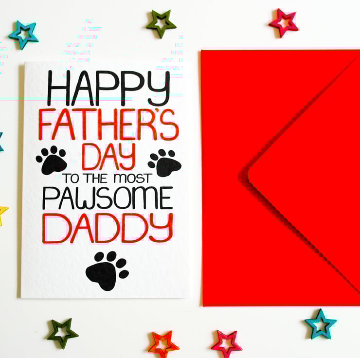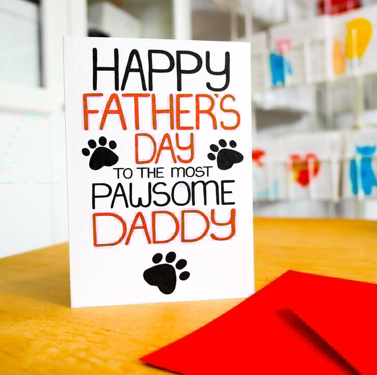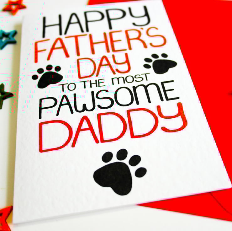 Greeting on front: HAPPY FATHERS DAY TO THE MOST PAWSOME DADDY
