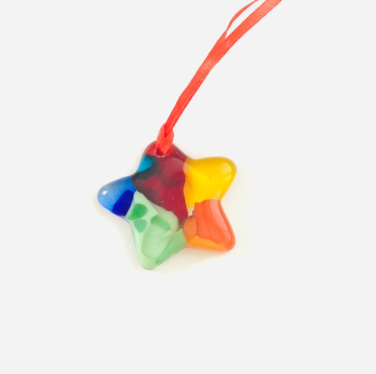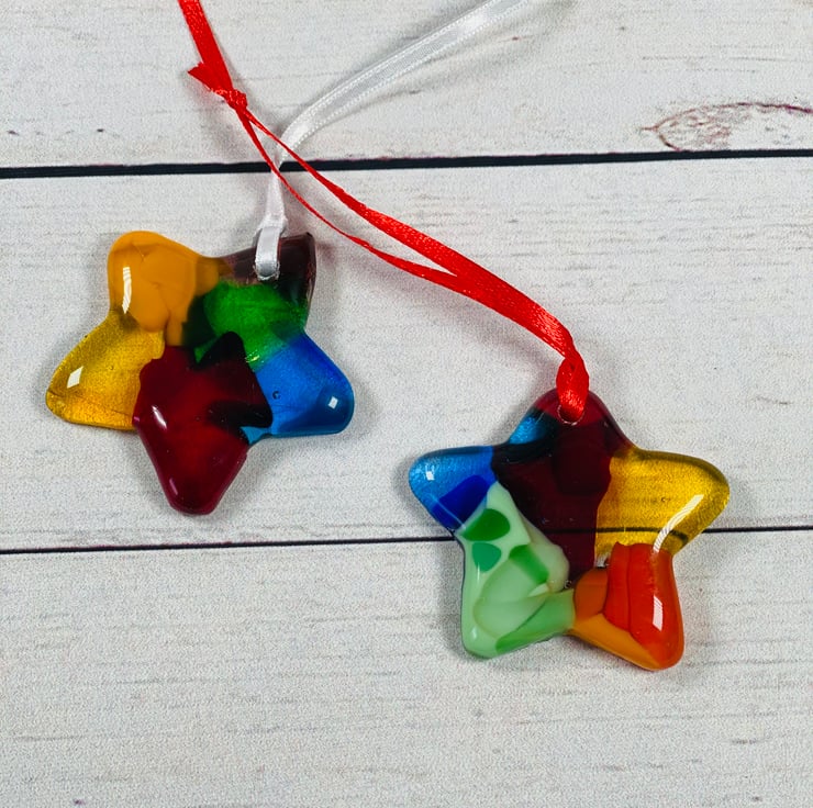 Let someone know they are a star ! . These lovely little stars are all unique and so pretty . It’s a lovely way to let someone know they are special . Handmade by me these rainbow hearts are 2 in diameter and approx 1/4 inch thick . They are are beautiful and unique gift .