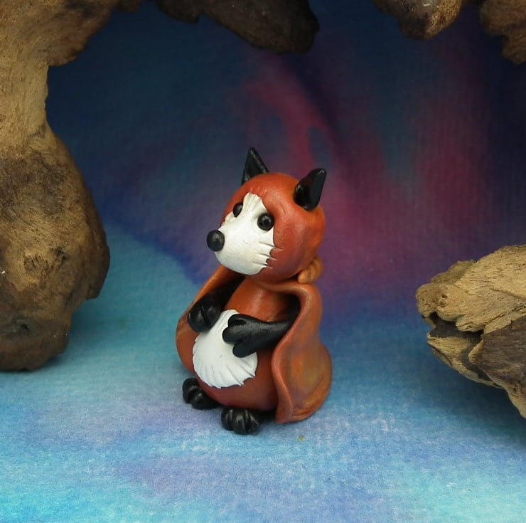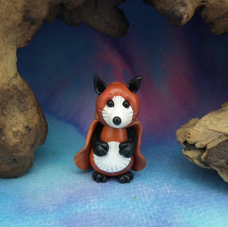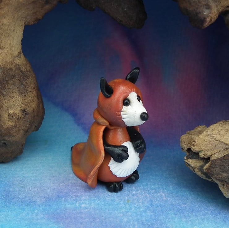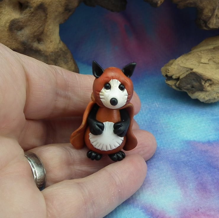 This is a 'one of a kind' creation; entirely handmade without the use of moulds here at my studio on the Sussex Coast. Modelled with Prosculpt polymers, painted with heat set paints before sealing with lacquer, Flyn has sparkling black onyx eyes. He is one and a half inches tall.