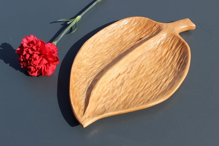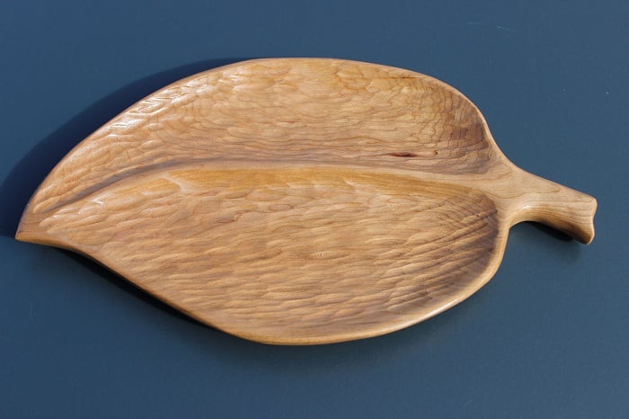 This beautiful handcrafted leaf shaped dish makes an attractive and affordable gift. The platter is made from cherry, coated in food safe oil which is water, alcohol and foof acid resistant.