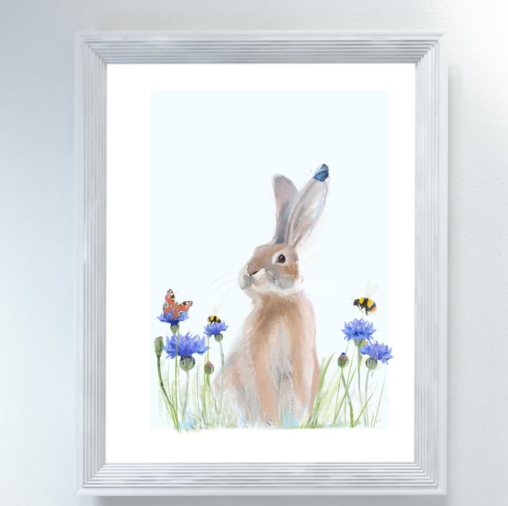 This is one of three bunny art prints that came from original paintings I completed for Easter. I added the cornflowers to this one after planting wild flowers in my garden to encourage the bees and butterflies.