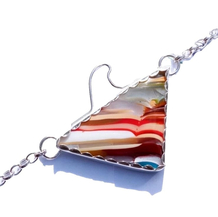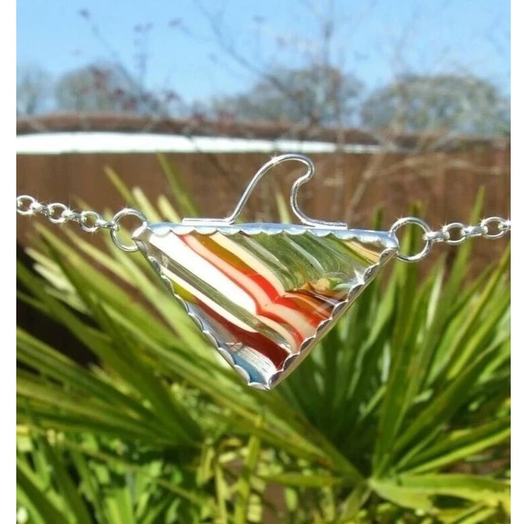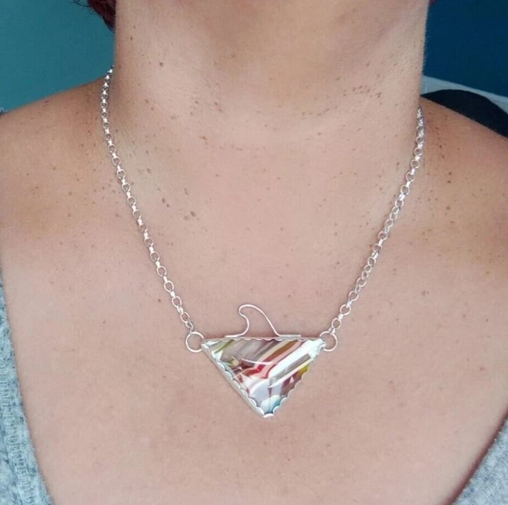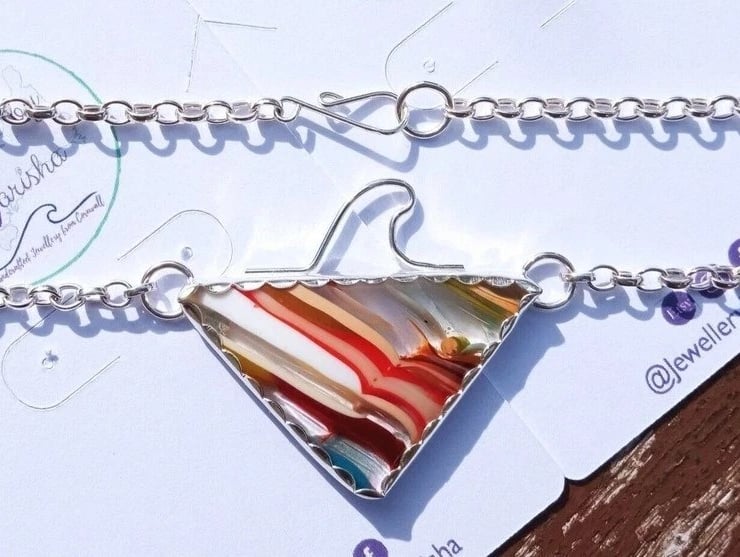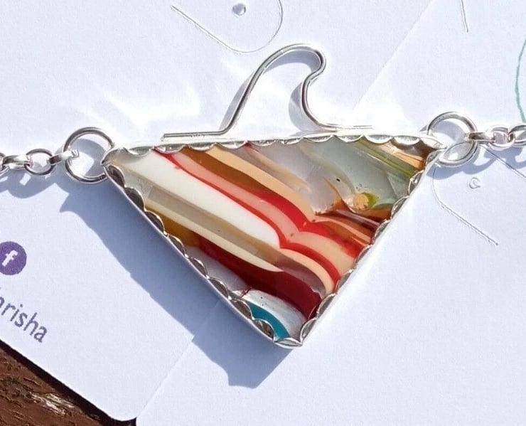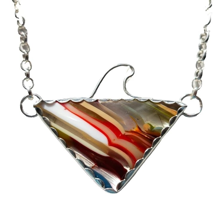 Handcrafted Surfite Surfboard Resin Triangle Necklace with Wave