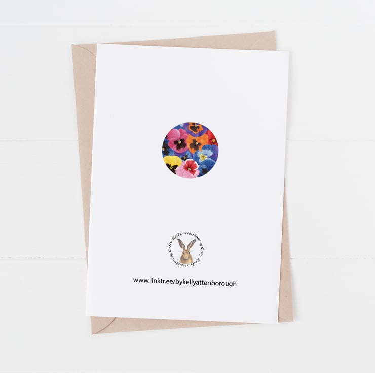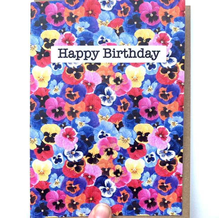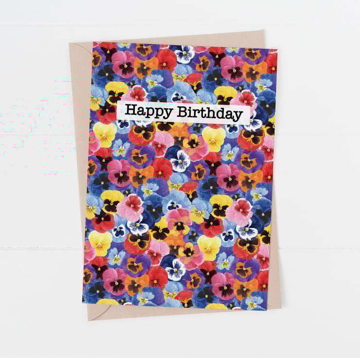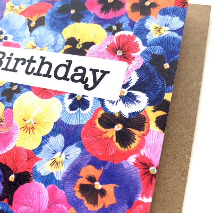 This pansy birthday card is a great way to send a birthday message to a friend or loved one. The card has been prints on to uncoated card giving a soft feel and an easy surface to write on. The card is blank inside for you to write the message you wish. It comes with its own kraft paper envelope and is plastic free.