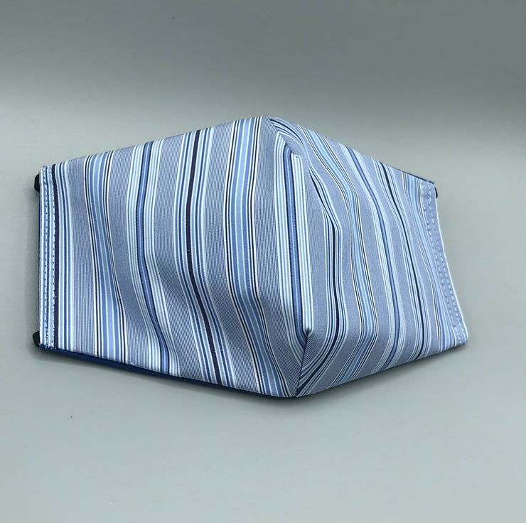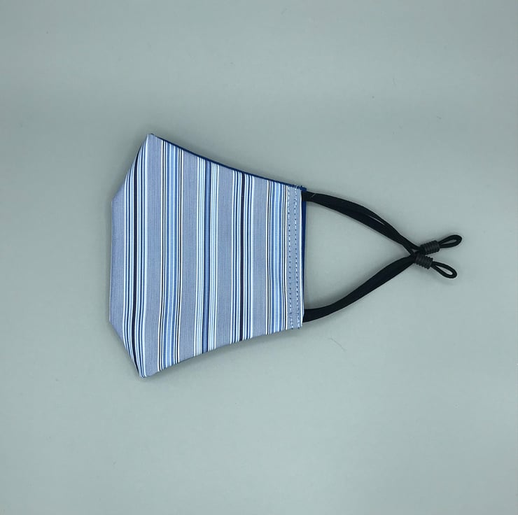 Blue Multi Striped Triple Layer Face Mask. Double Sided. Cotton Fabric.