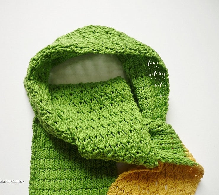 This lacy scarf is light, pretty on both sides and just the accessory to wear as seasons change. It makes a wonderful handmade gift for a stylish young lady!