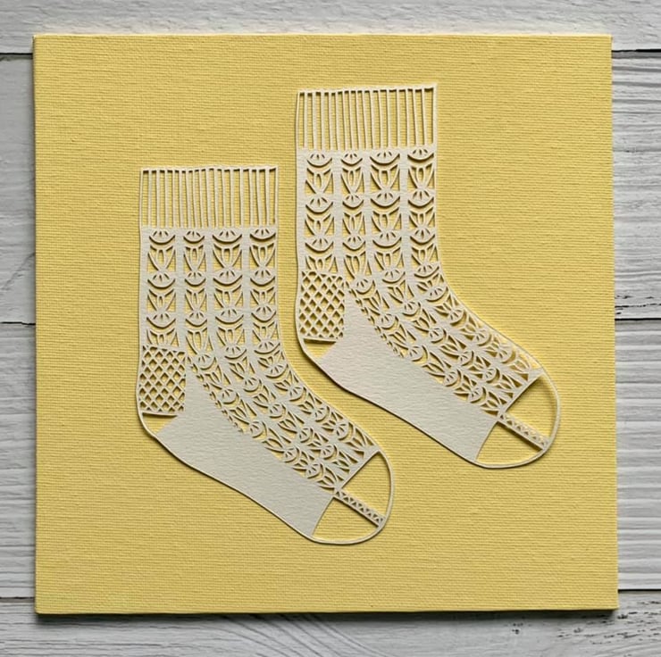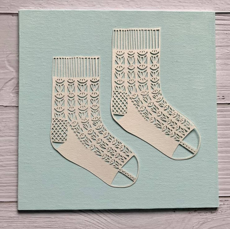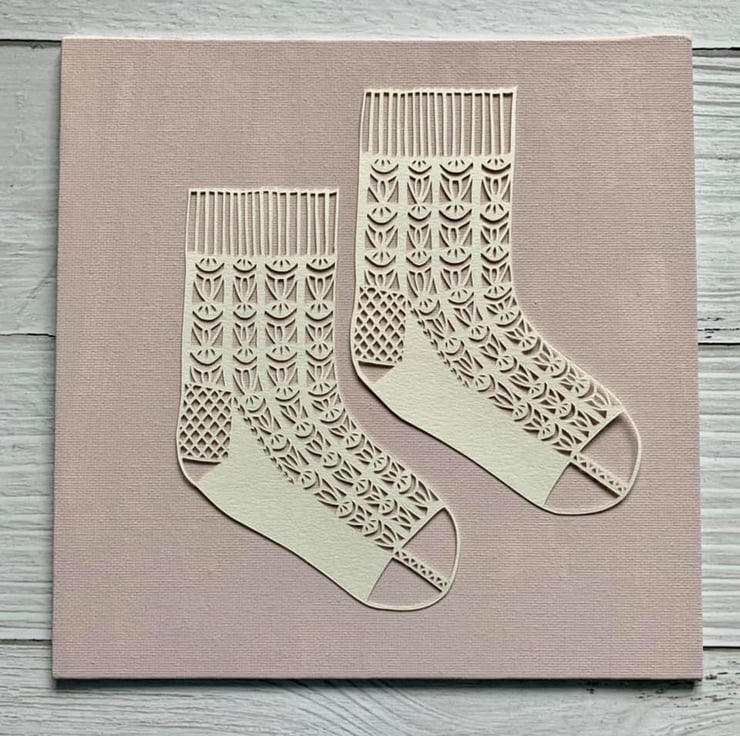 Original papercut 'Lacy Socks', hand cut using a scalpel. Designed and hand drawn by Gemma Esprey.