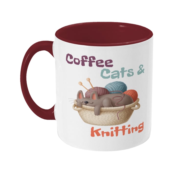 Coffee Cats and Knitting Mug, a perfect gift for the crafty knitter who happens to drink coffee and is a cat lover.
