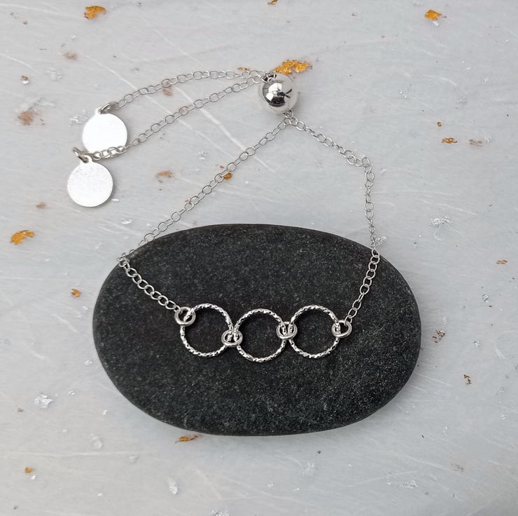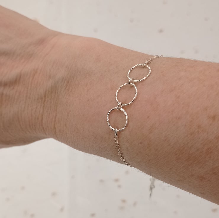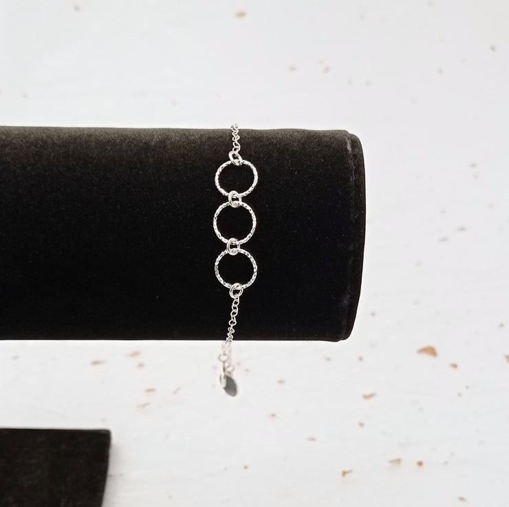 Sterling silver, diamond cut, 3 ring bracelet