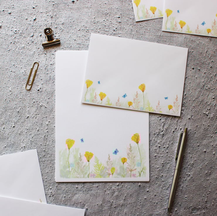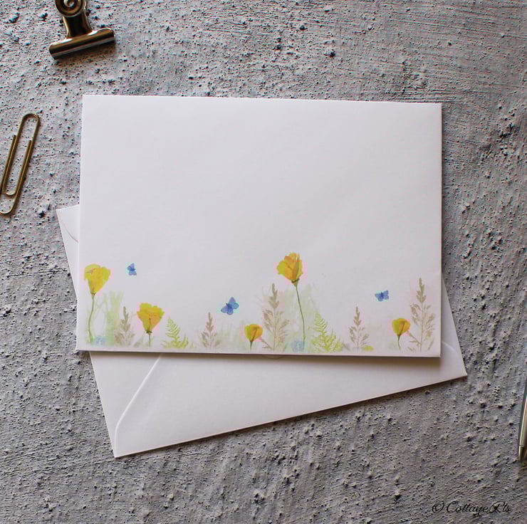 Wildflower Hedgerow Letter Writing Paper 10 Sheets and 5 Envelopes