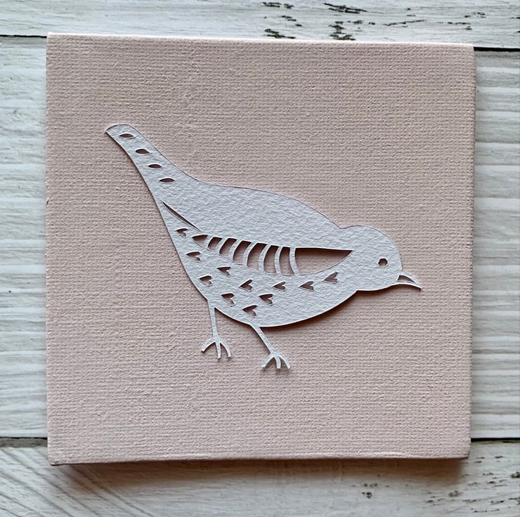 Original mini bird papercut 'Rose', hand cut using a scalpel. Designed and hand drawn by Gemma Esprey.