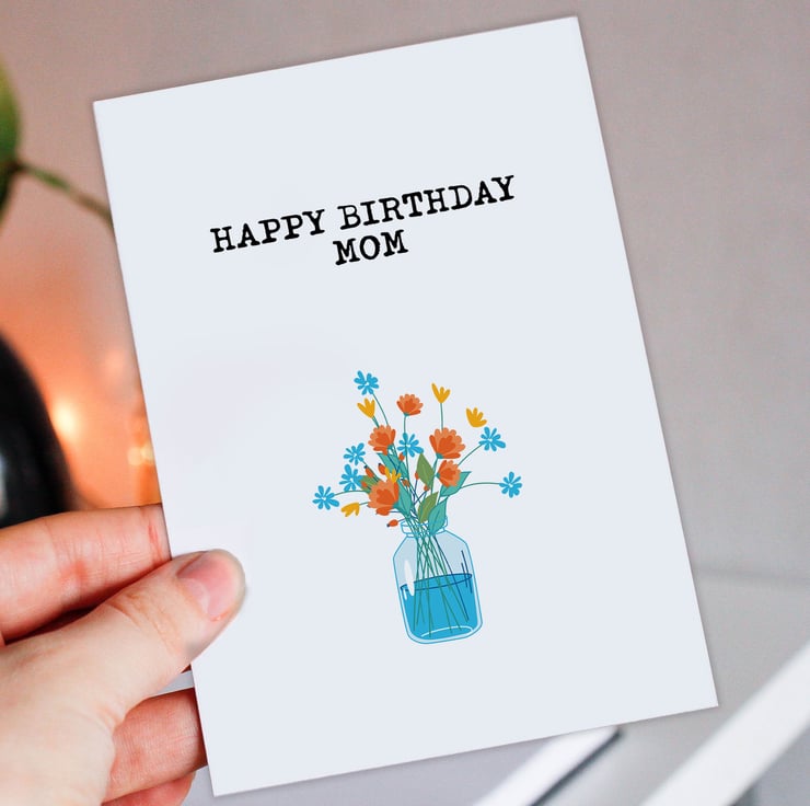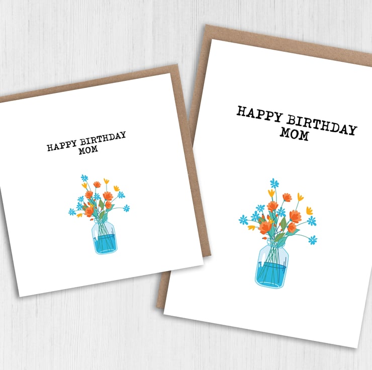 Mum, mom, mother birthday card: Flowers in vase (Size A6/A5/A4/Square 6x6")