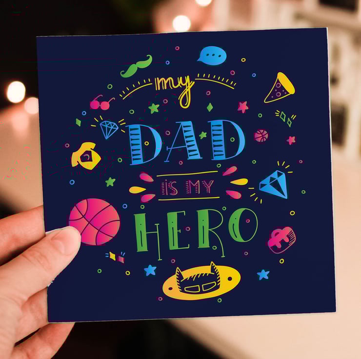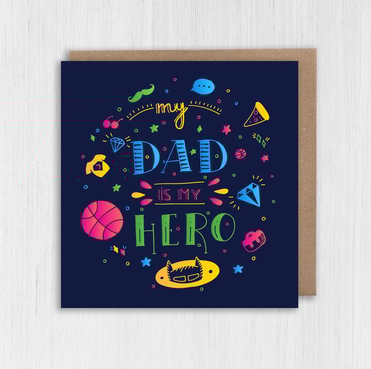 Doodle-style Father’s Day card for dad, daddy, father: My dad is my hero (Size A6/A5/A4/Square 6x6")