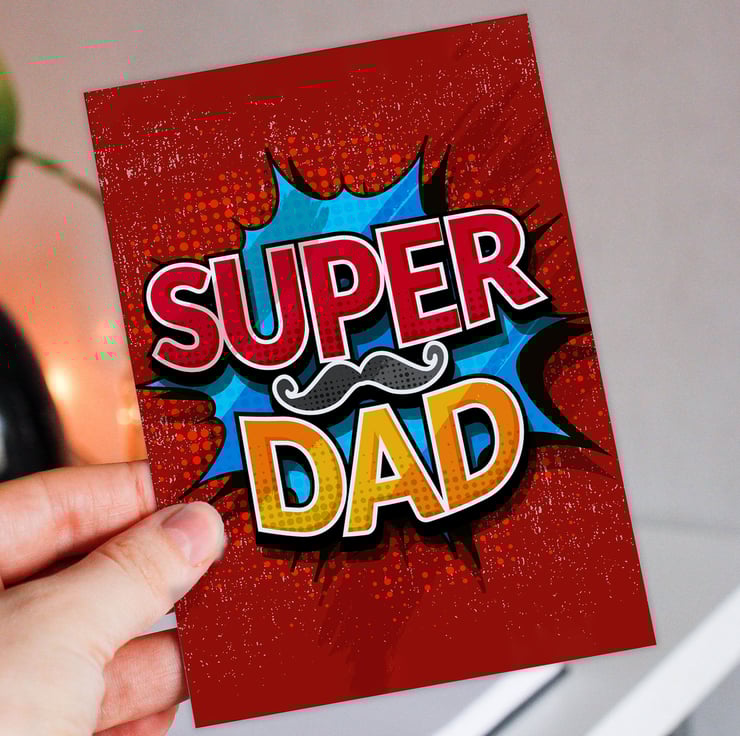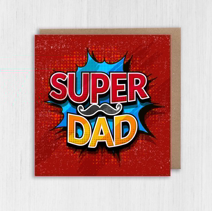 Comic book effect Father’s Day card for dad, daddy, father: Super Dad (Size A6/A5/A4/Square 6x6")