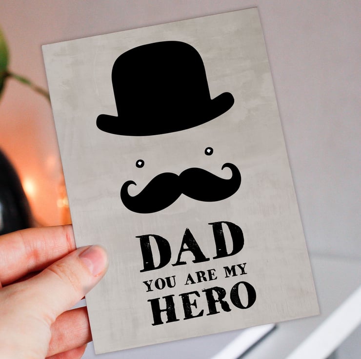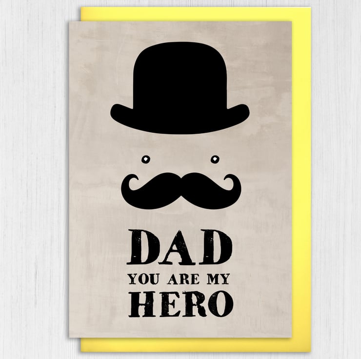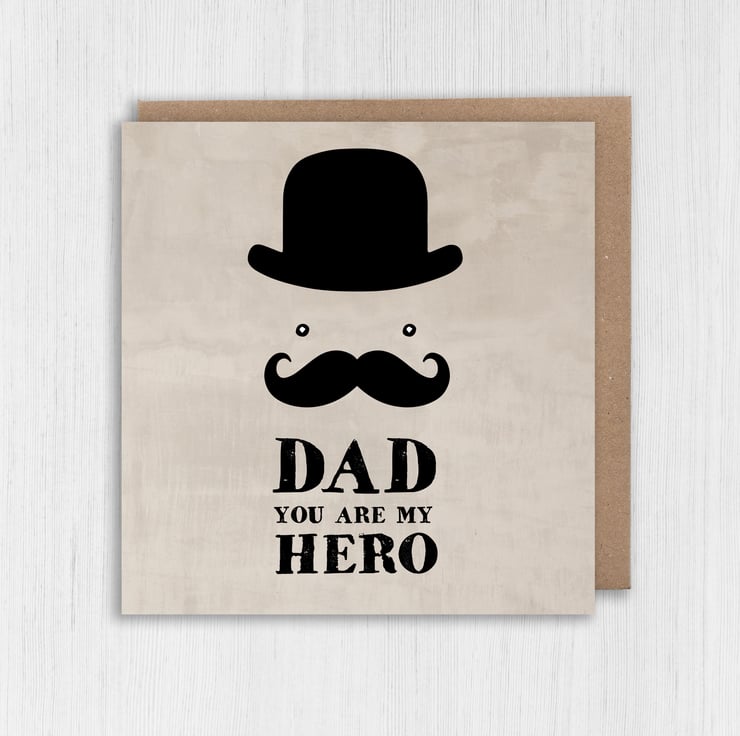 Vintage style bowler hat Father’s Day card for dad, daddy, father: Dad, you are my hero (Size A6/A5/A4/Square 6x6")