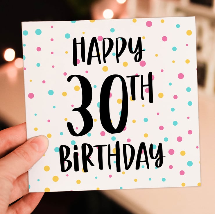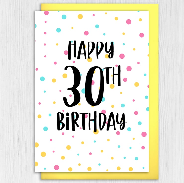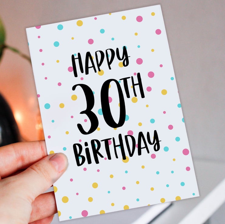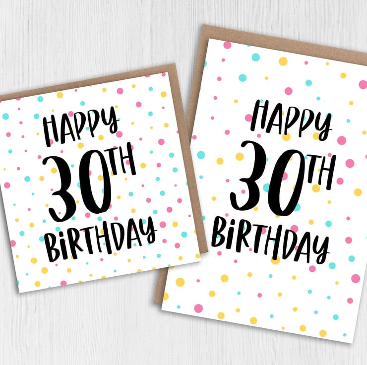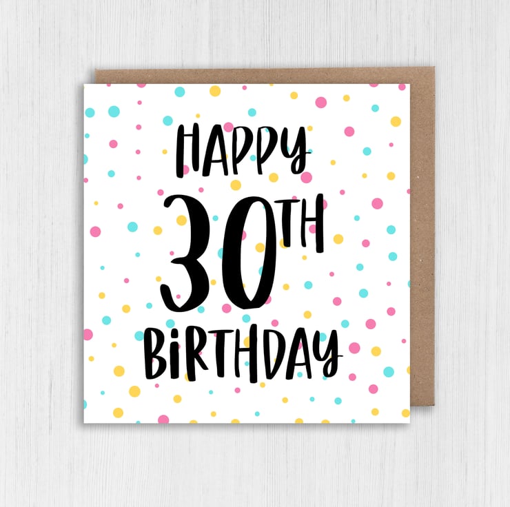 Personalised, any age birthday card: Coloured dots - 18th, 21st, 30th, 40th, 50th, 60th, 70th, 80th, 90th, 100th (Size A6/A5/A4/Square 6x6")