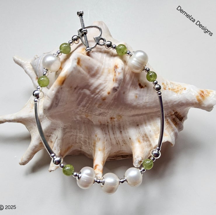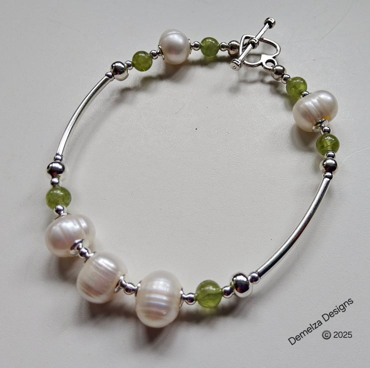 This bracelet will make a perfect unique gift for a dear friend, family member or a treat to yourself to wear on a daily bases, especially if you love genuine pearls and peridot. Peridot is the birthstone for August.