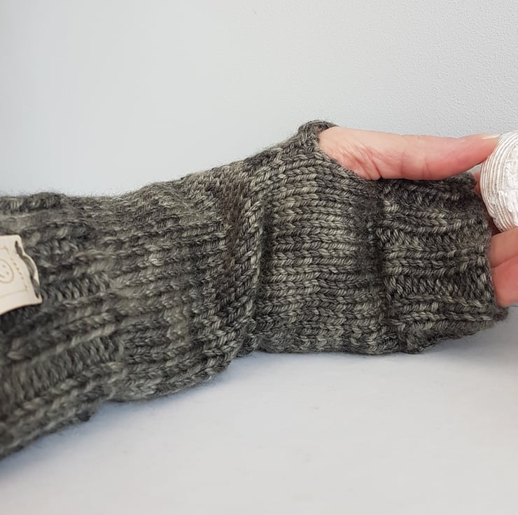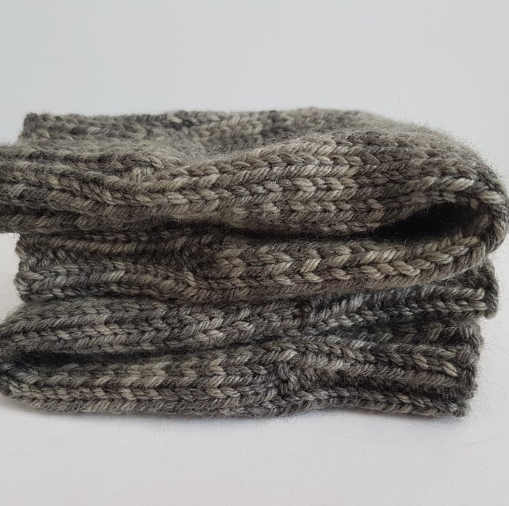 A beautiful and cosy pair of wrist warmers crafted from a fine blend of extra fine merino and cashmere green tonal yarn. These are perfect for nippy mornings, making them a perfect gift for dog walkers and texters alike!
