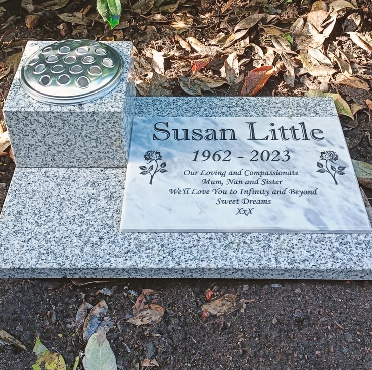 Personalised Grey Granite Memorial Grave Plaque incorporating a matching grey Granite vase (Price includes personalisation)